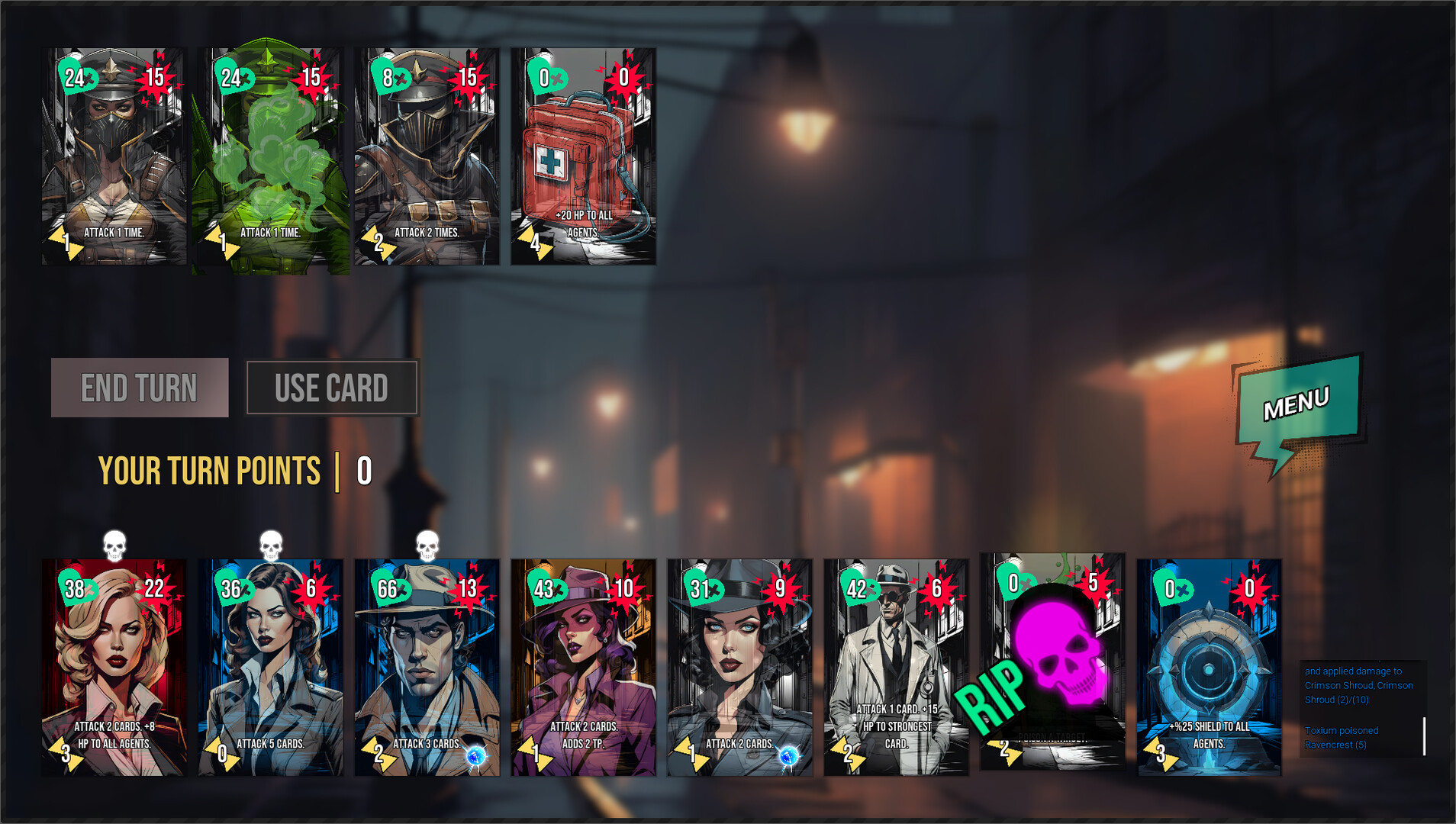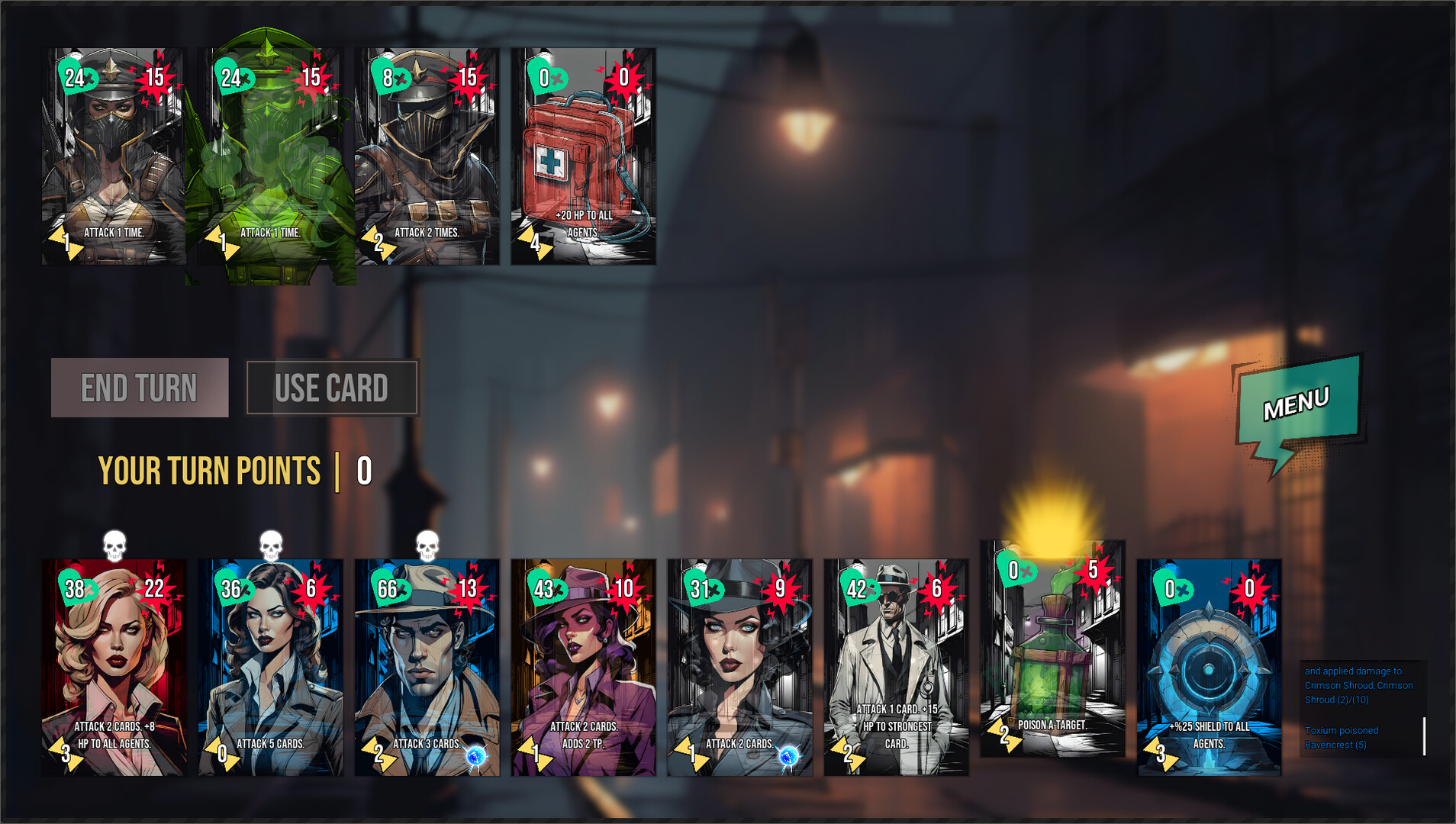 你是为推翻大头目而行动的特工。一场又一场任务… 你的卡组就是你的部队。你的卡牌是你的弹药。每一个决策都决定你生存——或陨落。