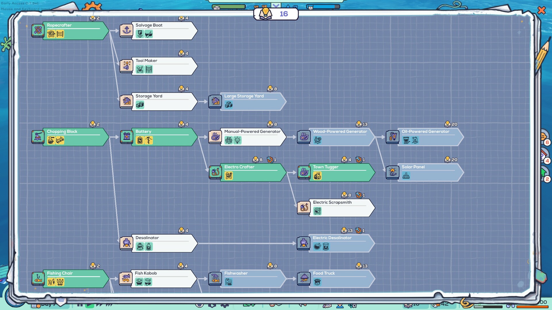 漂泊者们能将垃圾、浮木和漂浮物打造成船只和建筑物。这样,他们就能收集雨水,猎取各种生物,并从海底打捞废料。