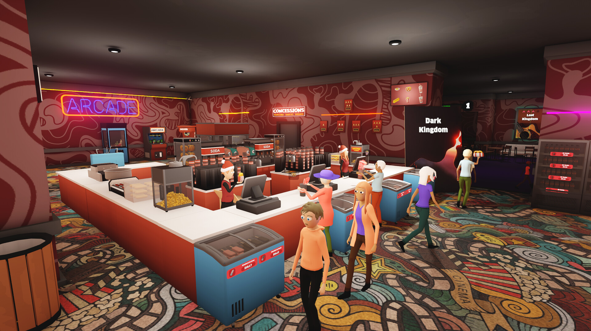 Ultimate Theater Simulator is a first-person cinema management game where you screen movies, serve snacks, hire staff, handle chaos, and grow your dream theater from the ground up.